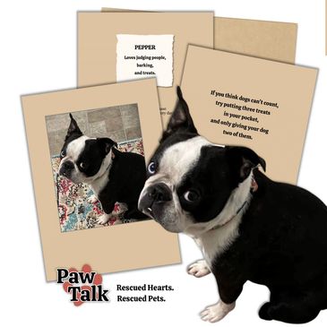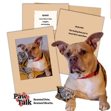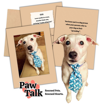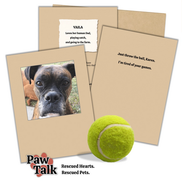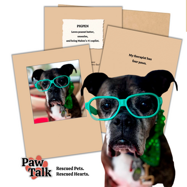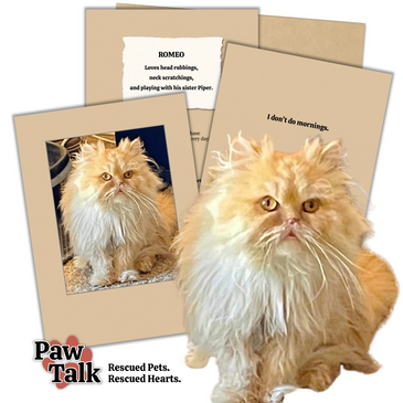 Paw Talk Greeting Cards feature real rescued pets, and help raise money to support pet rescue organizations.